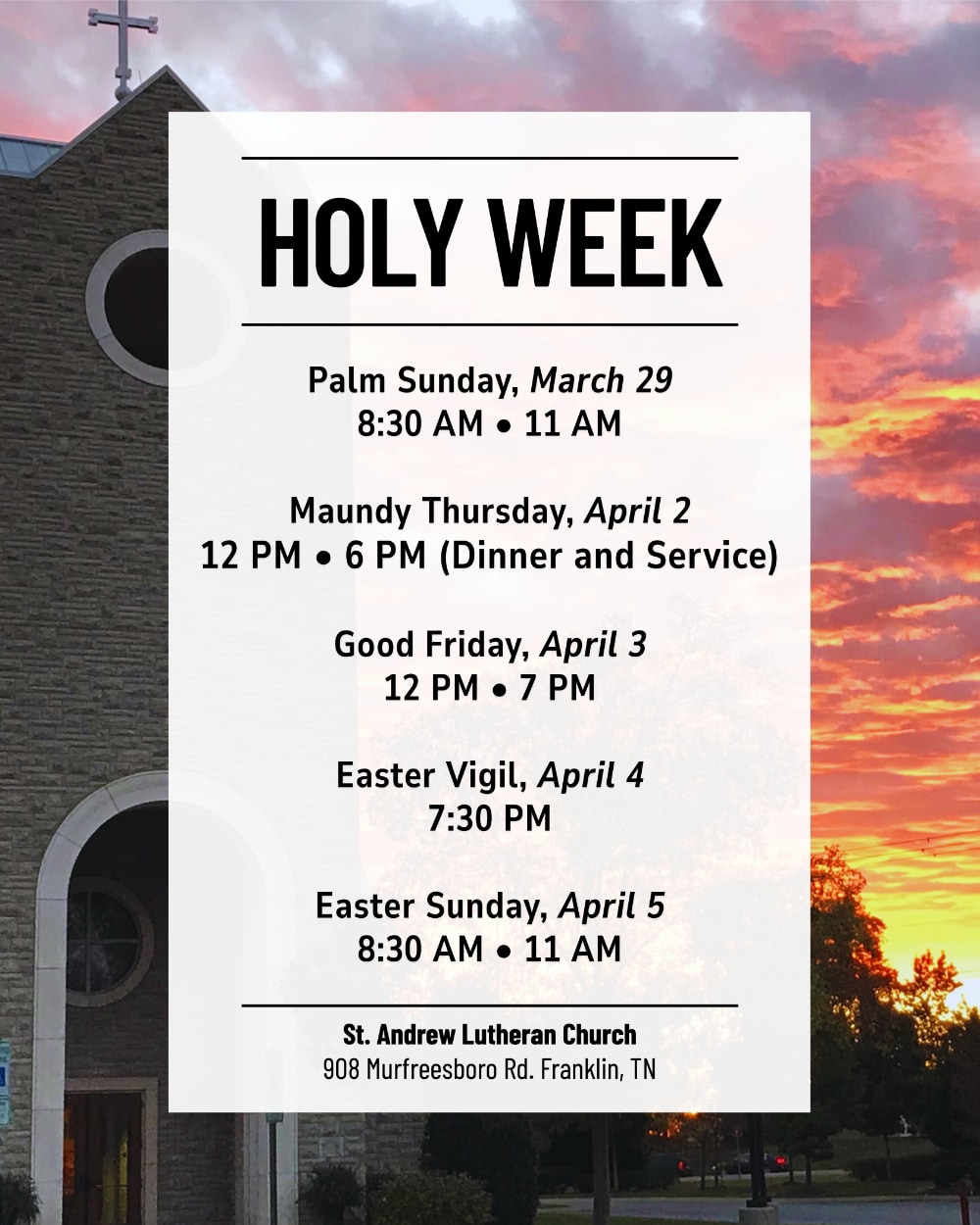 Thank you for visiting the virtual home of Saint Andrew Lutheran Church in Franklin, Tennessee.
